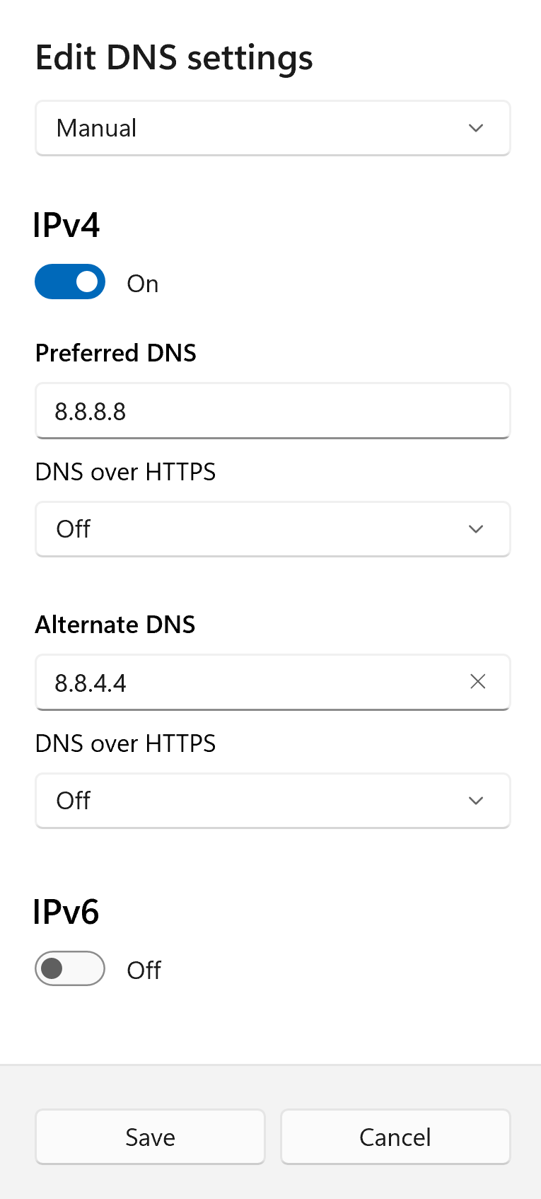 Save the settings and then restart your PC (some versions of windows require this to update the DNS settings)